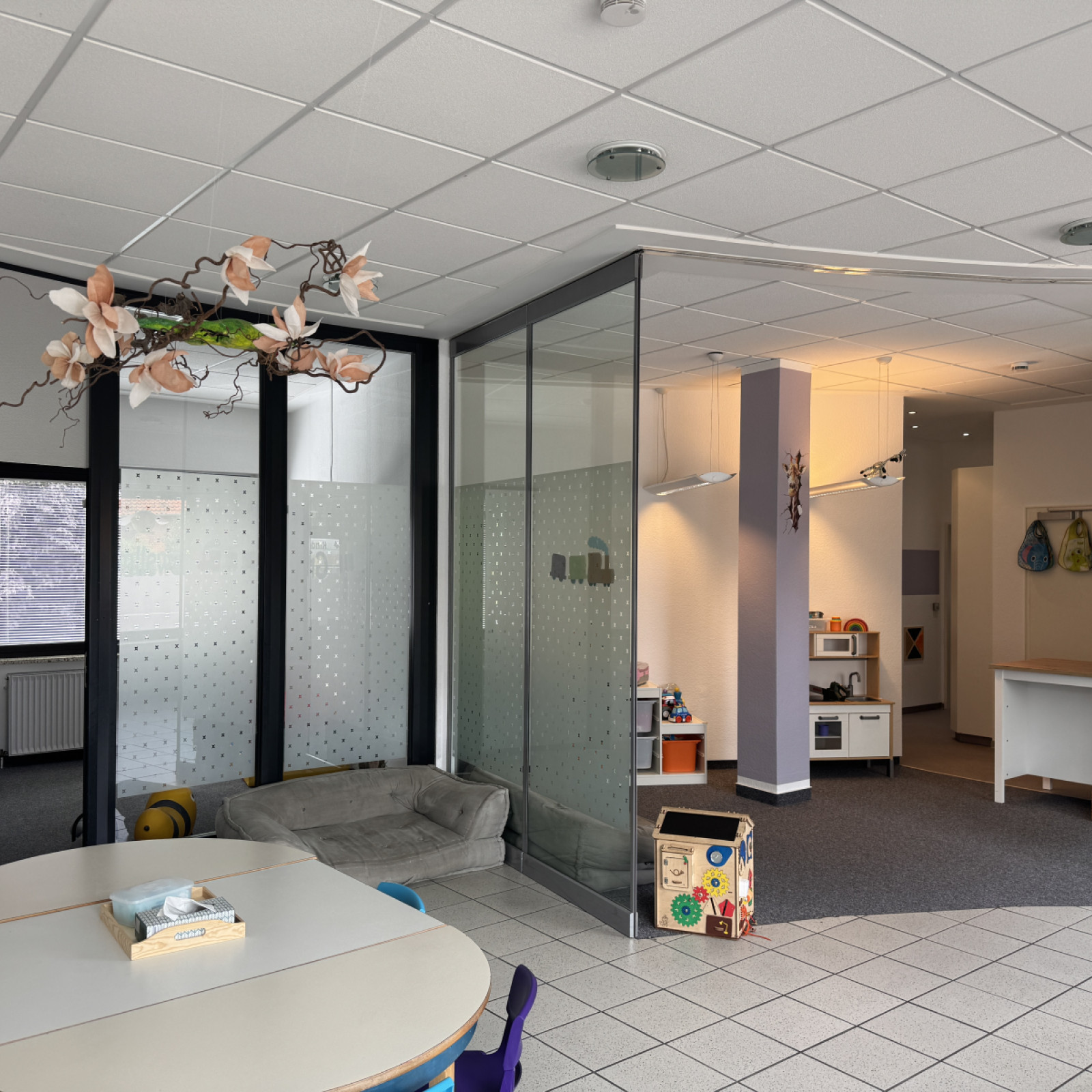 Unsere Großtagespflege liegt im Ort Großgoltern, ein Ortsteil der Stadt Barsinghausen am schönen Deister, unweit entfernt von der B65, die zwischen Minden und Hannover verläuft. Unsere Räumlichkeiten befinden sich ausschließlich im EG, daher sind keine Treppen zu überwinden. Wir haben insgesamt 4 Zimmer, eine Küchenzeile und 2 WC´s zur Verfügung. Die Räume sind folgender Maße aufgeteilt: ein großer Aufenthaltsraum, der zugleich als Spiel-, Bastel-, Mal-, Bewegungs- und Esszimmer genutzt wird. Zudem gibt es 1 Schlafraum mit insgesamt 8 Betten, 1 Raum mit Kuschel-Lese-Ecke und großem Bällebad sowie ein Mehrzweckraum, der durch verschiebbare Panzerglas-Wände vom großen Raum abgetrennt werden kann. Somit besteht immer die Möglichkeit sich mit einer kleinen Gruppe zurück zu ziehen.